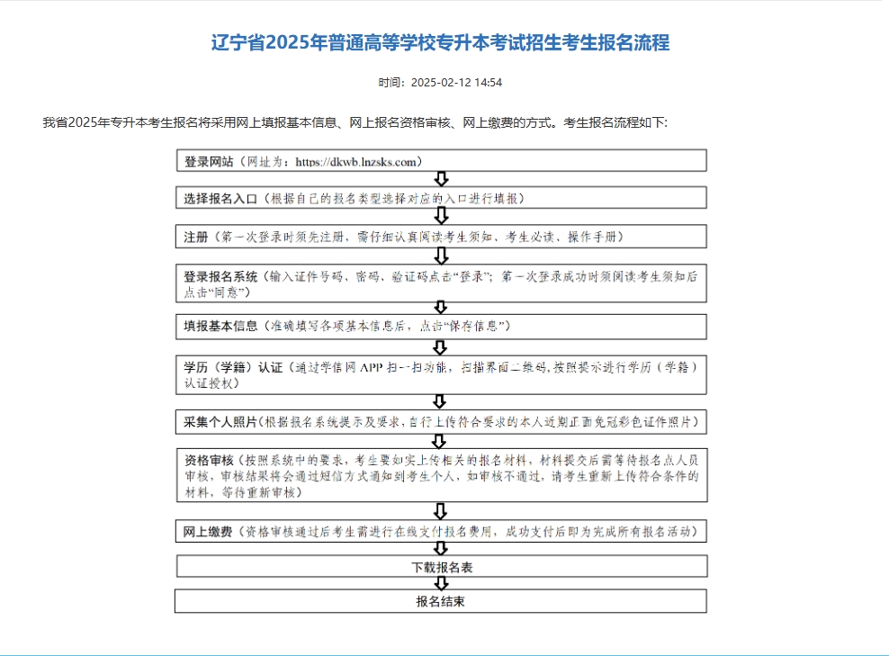 辽宁省2025年普通高等学校专升本考试招生考生报名流程