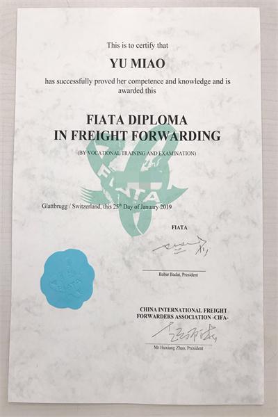 于淼同学FIATA证书