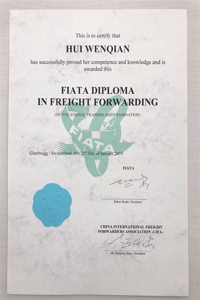 惠文茜同学FIATA证书