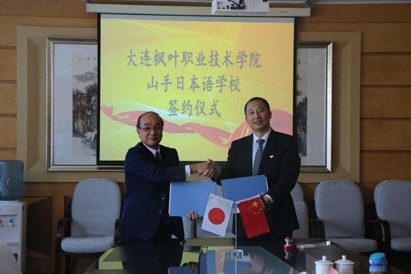 解建国院长与山手日本语学校理事长庆祝两校成功建立友好合作关系