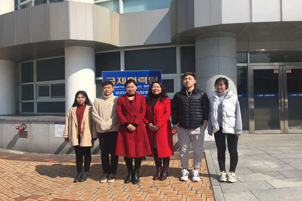 2月26日,走访韩国朝鲜大学,看望我院交换生与留学生。受到该校的国际交流处部长、国际贸易类专业教授的热烈接待。并与我院留学生进行深入交谈,学生从学习状况到个人素养都得到了极大的提高,并准备在明年三月份攻读研究生。