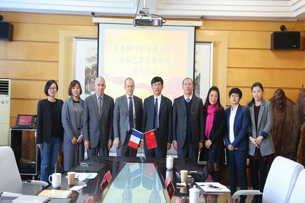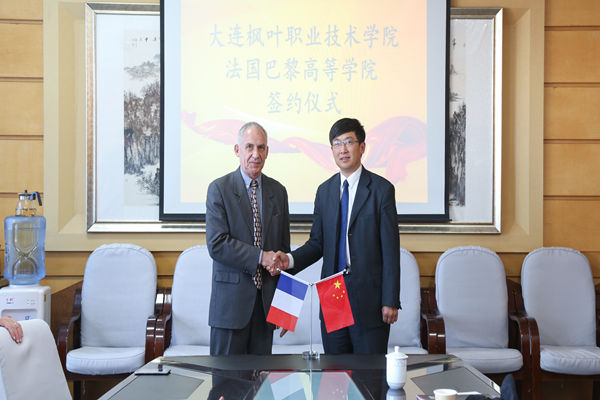 法国巴黎高等学院院长德拉卡尔与杨捷院长庆祝两校成功建立友好合作关系
