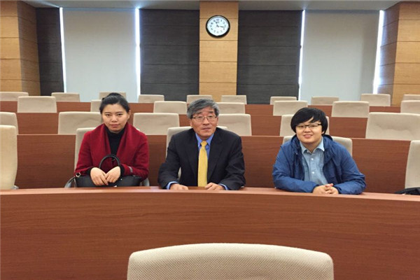我院代表与水原大学校长秘书室长朴泰德和国际学院院长李新东合影
